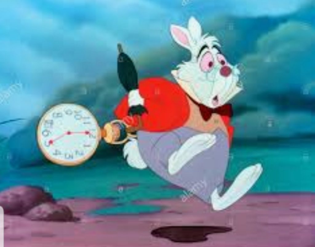I‘m late, I’m late!!! For a very important date, no time to say hello, goodbye. I’m Late, I’m late, I’m late!!!